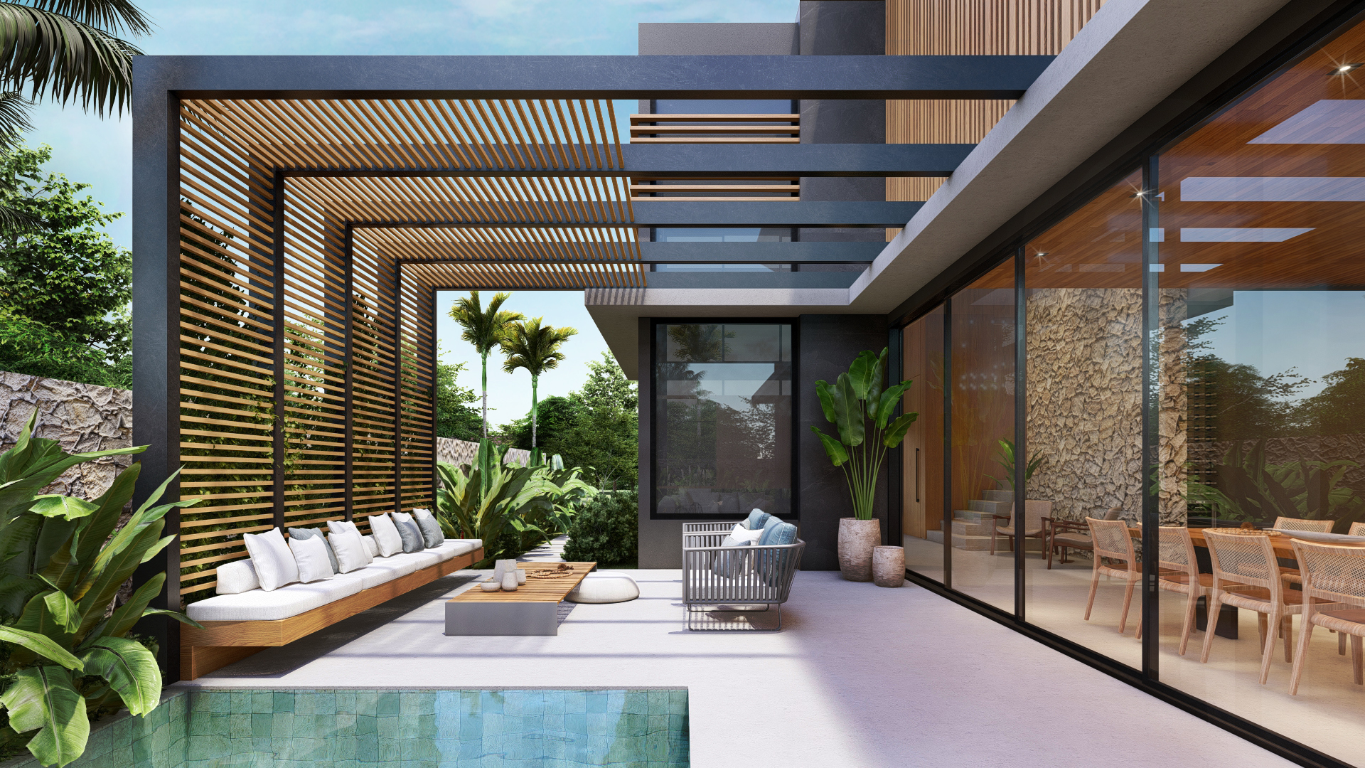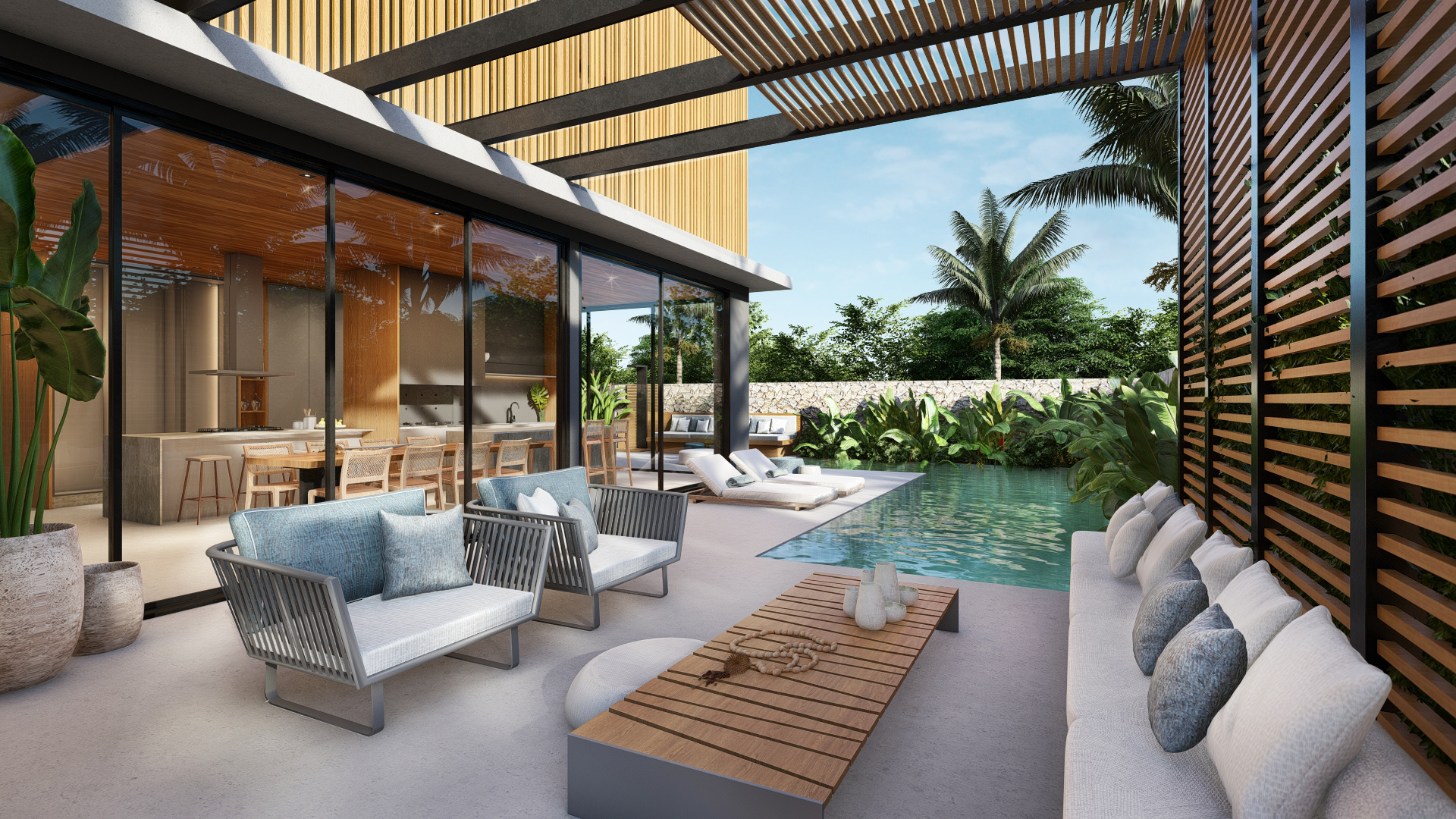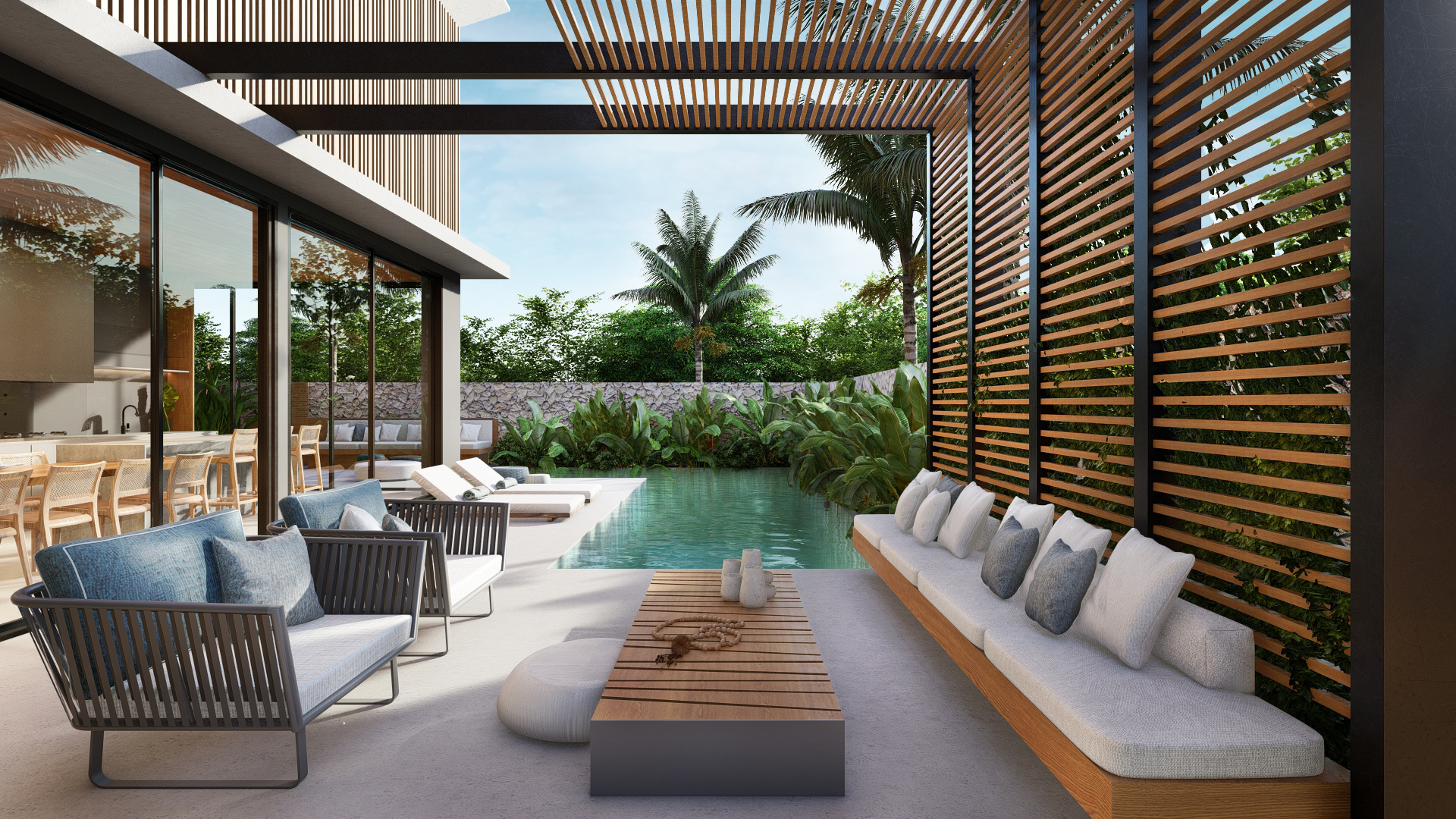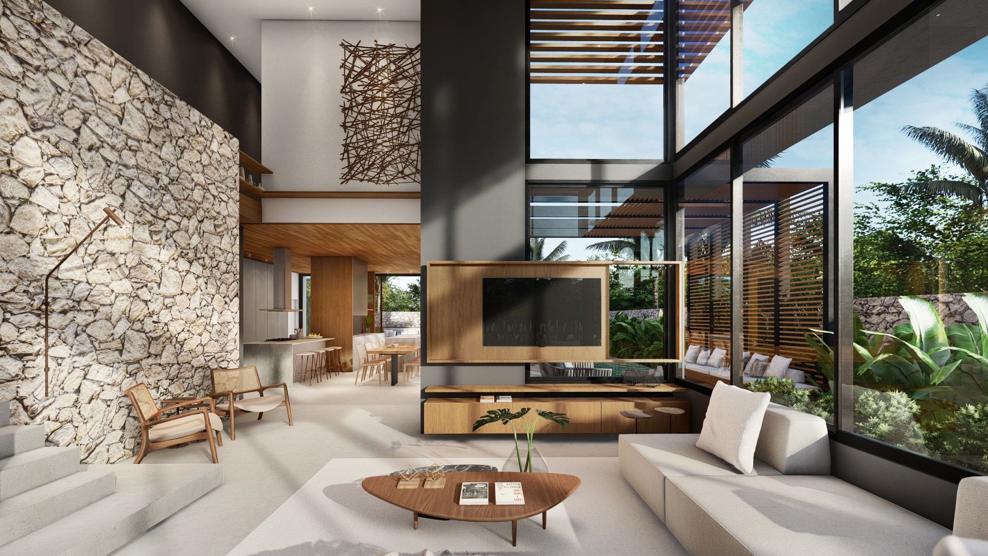 A arquitetura de interiores abraça a proposta de trazer o paisagismo para o convívio contínuo em todos os ambientes. No estar, na cozinha ou no lounge externo, a sensação é que em qualquer espaço haja a relação permanente de aproximação, de diálogo e de comunhão com o meio.
