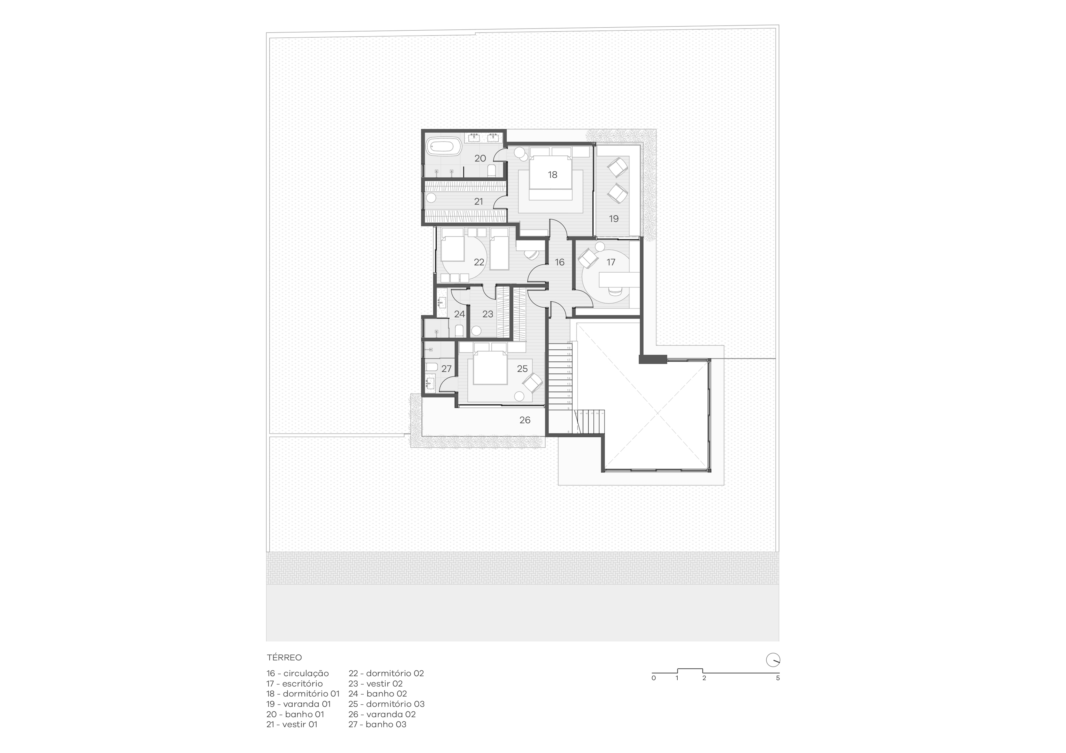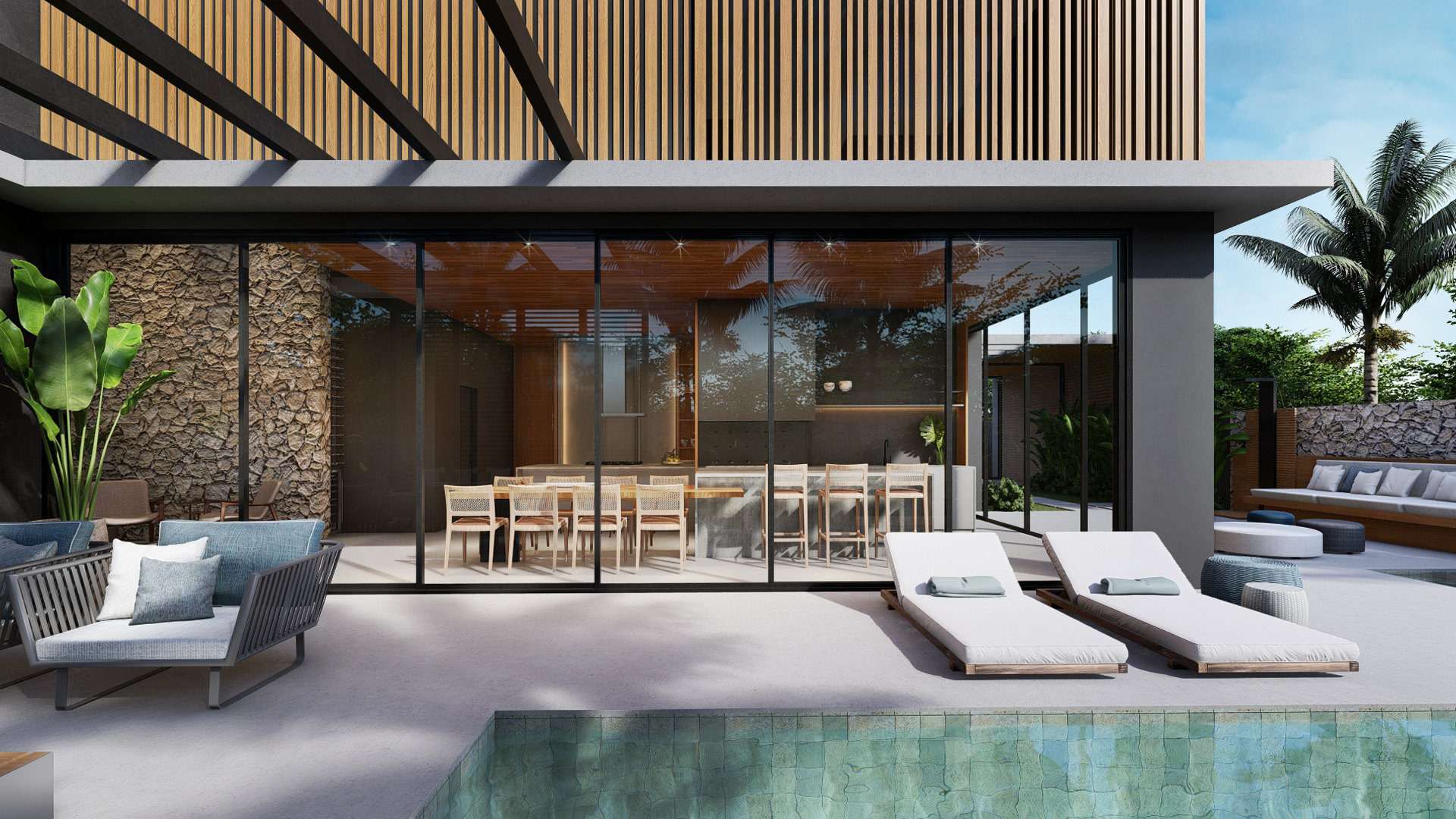 Nesta residência, localizada em uma área bastante arborizada no norte da Ilha, as grandes aberturas ampliam a vivência da família com a área de lazer externa. Nela, espaços de sol são naturalmente abraçados pelo verde exuberante do entorno.